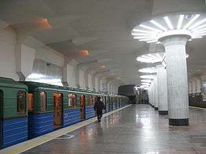 Oleksiivska (Ukrainian: Олексіївська) is a station on Kharkiv Metro's Oleksiivska Line. The station opened on 21 December 2010.[1] It was the terminus of the Oleksiivska Line until the Peremoha station was opened on 19 August 2016.[2]