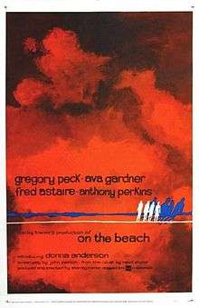 On the Beach is a 1959 American black-and-white post-apocalyptic science fiction drama film from United Artists, produced and directed by Stanley Kramer, starring Gregory Peck, Ava Gardner, Fred Astaire and Anthony Perkins.[2] The film is based on Nevil Shute's 1957 novel of the same name depicting a nuclear war and its aftermath.[3] Unlike the novel, no blame is placed on whoever started the war; it is hinted in the film that the threat of annihilation may have arisen from an accident (for example, a fault in a few vacuum tubes or transistor circuits, as in the similarly themed 1964 film Fail-Safe).