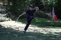 An instructor demonstrating a weapons form.