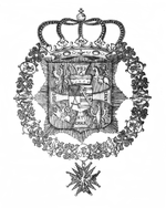 The star of the order consisted of an eight-pointed gold star with straight rays; the central golden disc bore a red-bordered white enamelled cross pattée with a golden rosette at its center and golden rays between the arms, surrounded by a blue enamel ring bearing the motto "Pro Fide, Lege et Rege" (For Faith, Law and the King).