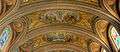 From the Great Dome to the choir loft, the ceiling is covered by five giant murals. They depict Mary as Queen of Patriarchs, Queen of the Apostles, Queen of the Angels, Queen of the Prophets, and Queen of the Martyrs. The two walls on the Basilica's sides feature huge paintings depicting scenes from the Gospels: the Slaughter of the Innocents, the Flight into Egypt, and the Birth of Jesus at Bethlehem.