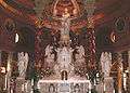 Flanking the altar are four swirled marble columns of rare red marble, reminiscent of St. Peter's Basilica in Rome. A legend told about the marble says a group of Buffalo-born soldiers stumbled upon the unique red marble while in Spain during World War I. Upon seeing it, the soldiers thought immediately of the basilica being built at home by Father Baker. They went to talk to the Spanish farmer who owned the property. After hearing the story of Father Baker, the farmer agreed to donate the "useless rock" on his property. Arrangements were made and the marble was sent to Lackawanna to complete the work on the basilica's altar.[4]