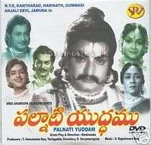 Palnati Yuddham is a 1966 historical film produced by Tagirisa Hanumantha Rao and Yarlagadda Lakshmaiah Chowdary based on the battle of Palnadu.[1] The film stars N. T. R. and Bhanumati in the lead roles. The film won National Film Award for Best Feature Film in Telugu - certificate of merit in 1967 Also Bhanumathi Ramakrishna got Rashtrapati Award for her role.