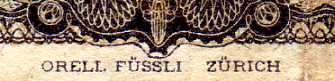 ORELL FÜSSLI ZÜRICH printer mark on a 50 korona (1920) state note |