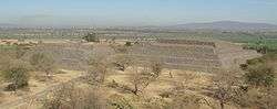 The center originally occupied about 130 hectares[1] of land and was home to many structures, of which 22 pyramids have been identified,[1] including a multitude of terraced agricultural fields that supported the population. The region was initially settled around 100 AD, with the center reaching its apex between 300 and 650 AD prior to the population's reversion to nomadism.