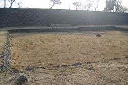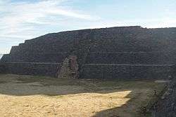 The site main structure is unique in Mesoamerica; it is considered the first constructive stage, combining a large rectangular stepped structure with “sunken patios” (pool) and round structures built on top. The structure basement is stepped to adjust to the irregular terrains it was built on.[4]