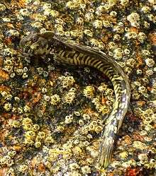 Periophthalmus kalolo, the common mudskipper, is a species of mudskippers native to marine and brackish waters of the Indo-Pacific from eastern Africa to Samoa. This species can be found in mangrove forests where it spends most of its time out of the water. This species can reach a length of 14.1 centimetres (5.6 in) SL.[1]