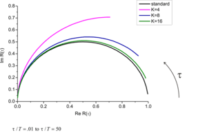 For a system with discrete number of gates and limited time window the phasor approach needs to be adopted. The equation for reference semicircle is changed to:[4]