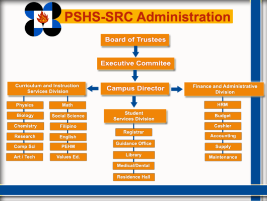 The Student Services Division handles the different branches of the school in charge of rendering suitable services and benefits, as well as providing for its students and their welfare.[3]