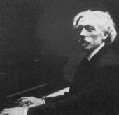 In June Tchaikovsky was in London to conduct a performance of his Fourth Symphony. There he ran into his friend, the French pianist Louis Diémer, whom he had met in Paris five years earlier during a festival of Tchaikovsky's chamber works. Diémer had performed Tchaikovsky's Concert Fantasia, in a two-piano arrangement with the composer at the second piano.[4] Diémer was one of the major French pianists of his time.[5] Sometime during their reacquaintance, Tchaikovsky might have mentioned the concerto upon which he had been working. Regardless, he decided to dedicate the work to Diémer.[6]