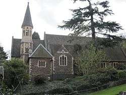 Christ Church, located in Avenue Road, Great Malvern, within 200 metres of Great Malvern station and Malvern St James School, is one of two churches in the parish of Christ Church and St Mary's, Malvern, with St Mary's in Sherrards Green being a chapel of ease serving large housing estates in the Pound Bank area.[5] Built in 1875, the church is a Grade II listed building,[6] and an English Heritage grant aided place of worship,[7] Designed and built by T D Barry & Sons of Liverpool to seat 700 people,[8] its architecture is based on pure 14th century Gothic style with a 55 metre spire and an east window by Charles Eomer Kemp.[9] The church has a 1,486 pipe organ constructed by Nicholsons of Malvern in 1884, restored and repaired in 1971 and 1986.[10] The church does not have its own graveyard; burials take place in the nearby Great Malvern cemetery in Madresfield Road.