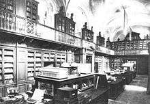 During the German suppression of the Warsaw Uprising of 1944 around 70 to 80% of libraries were carefully burned by the Verbrennungskommandos (burning detachments), whose mission was to burn Warsaw.[14] In October 1944 the Załuski Library, the oldest public library in Poland and one of the oldest and most important libraries in Europe (established in 1747), was burned down.[15] Out of about 400,000 printed items, maps and manuscripts, only some 1,800 manuscripts and 30,000 printed materials survived.[15]