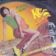 "Please Don't Go" is a song recorded and released in 1979 on the KC and the Sunshine Band album Do You Wanna Go Party. Originally written in the key of D flat, the song was the band's first love ballad, in which the subject pleads for a second chance. Shortly after the song's one-week run at number one, the group broke up and Harry Wayne Casey went solo. The song was a number-one hit on the Australian ARIA Charts, the band's fifth and final number-one hit on Billboard Hot 100 charts, and the first number-one hit of the 1980s.[1] As the band was known as a pioneer of the disco genre, the song was released, ironically, on the same day as Disco Demolition Night in Chicago, Illinois.
