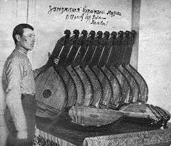 After a successful performance in Odessa the eleven members of the Capella ordered new banduras and in 1927 received new semi-chromatic Kiev type instruments made by Poltava bandura maker M. Domnenko.