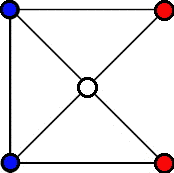 The board consists of 5 vertices and 7 edges. Each player has two pieces. Players take turns to move. At each turn, the player moves one of his two pieces into the adjacent vacant vertex. If a player can't move, he loses.