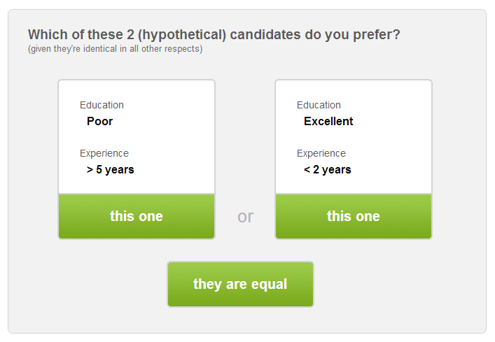 Figure 1: Example of a pairwise-ranking question (a screenshot from 1000Minds)