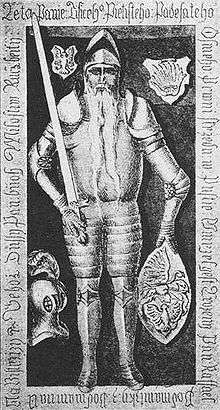 This dispute used Jan Podmanitzky and his brother Rafael Podmanitzky to gain power in the region; Považský hrad was the centre of their influence. They took the side of János Szapolyai although most of the region was under control of the Habsburgs. Possession of Podmanitzky, with a hard centre Považský hrad withstood attacks of king's army led by Katzainer, to whom Trencin gave up in the summer of 1528, but they even gained new possessions around Lednica. They were famous for their successful raids all around the region. In those times they were limitless rulers of the region; the whole northern part of the county, under their reign, was independent from the rest of the county controlled by Ferdinand I . In the 1530s they became involved in the fight against Protestant family Kostka. For their involvement they were given the manor of Vesprim. They split up in 1537 to create their own manors, leaving Rafael in the region and Jan creating Vesprim manor, but they both still continued with their raids. In 1542 their raids were issued on the king's court. After settling down the possession matters with Kostka, they accepted the results. A great fire started in 1543 which devastated the castle but his owner invested great effort to rebuilding it. After the great burn out of his "eagle's nest" Rafael did not feel safe, so he made an agreement with Habsburgs. Probably the best characterization of Raffael was by Jozef Kocis, author of several books about castles in Slovakia," Raffael Podmanitzky was no worse but no better than the others living in those times. He was only much stronger." After his conversion he fully dedicated his time to his manor. His loyalty was approved when he was named governor of the northern part of Trencsén County region. The end of their rule came with his death in 1558. His gravestone is still placed in Považská Bystrica. In the grave of Rafael a silver club was discovered from which a chalice was made. This was (in 1901) still in possession of the church. The chalice has the following inscription: "ARCUM SZUCSA SOLIS AEQUARI CURAVIT FERDINANDUS L 1528". The marble monument of Rafael Podmanitzky in Považská Bystrica is of interest because it has an inscription all around in old Slovak language it says "LETA PANIE TISICEHO PIETISTEHO PADESATEHO OSMEHO PRWNI STRZEDU W PUSTIE UMRZEL GEST UROZENY PAN RAFFAEL PODMANITZKY Z PODMANINA JEHOZ DUSSY PAN BUOH MILOSTIW RACZ BIETI ". The monument is on the right side wall of the Roman Catholic Church not far from the “Galerie”. It depicts a very tall man in full armor. The facial features are clearly chiseled in the stone.
