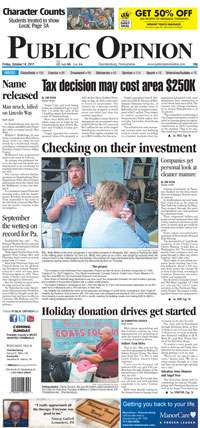 Public Opinion is a morning newspaper published seven days a week in the Greater Chambersburg area, including Franklin, Cumberland and Fulton counties PA.