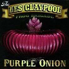 Purple Onion is the only studio album by The Les Claypool Frog Brigade, released on September 24, 2002. It followed two live releases by the band, and is the first release of the Frog Brigade's original compositions. While the Brigade regulars are consistent on much of the record such as Jay Lane, Eenor, Skerik and new percussionist Mike "Tree Frog" Dillon, many special guests appear on the album as well. Guests on multiple tracks include Ben Barnes and Sam Bass (then both from Deadweight). "D's Diner," a tribute to a Sebastopol, California restaurant, features sitar player Gabby La La in addition to the triple-bass onslaught of Claypool, Norwood Fisher (Fishbone) and Lonnie Marshall (Weapon of Choice). Warren Haynes (Allman Brothers Band) adds slide guitar on the "Buzzards of Green Hill" and Fish Fisher (Fishbone drummer) guests on "Whamola." "Whamola" was a live show staple named after the unique instrument Les employs—a one-string bass played with a drumstick. The song later appeared as a remix for the theme of South Park Season 10. "Barrington Hall" is a tribute to the UC Berkeley student housing known in the 1960s-1980s for counterculture.