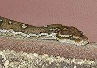 Some suggest that P. molurus and P. sebae have the potential to be problematic invasive species in South Florida.[3] The United States Department of Agriculture reports that only Python molurus bivittatus is an invasive species in the United States.[4] In early 2016, after a culling operation yielded 106 of the animals, Everglades park officials suggested that "thousands" may live within the park, and that the species has been breeding there for some years. More recent data suggest that these pythons would not withstand winter climates north of Florida, contradicting previous research suggesting a more significant geographic potential range.[5][6]