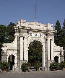 Despite failing in mathematics, Qian was accepted into the Department of Foreign Languages of Tsinghua University in 1929 because of his excellent performance in Chinese and English languages. At Tsinghua, Qian earned the admiration of many prominent scholars, but rarely socialized and was considered arrogant by his peers; one of his few friends was the budding Sinologist and comparatist Achilles Fang.[5] Qian also frequently cut classes, though he more than made up for this in Tsinghua's large library, which he boasted of having "read through."[5] It was probably in his college days that Qian began his lifelong habit of collecting quotations and taking reading notes. At Tsinghua, Qian met his wife, Yang Jiang, who was to become a successful playwright and translator; they married in 1935. For the biographical facts of Qian's following years, the two memoirs by his wife can be consulted.[6] Yang Jiang wrote, "Zhongshu's 'foolishness' could not be contained in books, but just had to gush forth'".[7] In the mid-1930s, Qian taught at Kwanghua University in Shanghai and contributed to English-language publications such as The China Critic.[8]