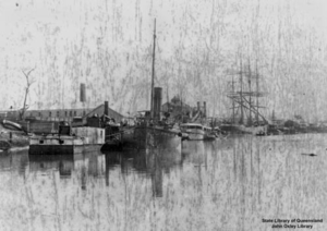 After the formation of the Queensland Maritime Defence Force in 1884, the colonial government purchased two gunboats and a torpedo boat to equip the new force.[1] However, given the number of ports along the Queensland coast it was realised that additional ships were required. Five ships had already been ordered for the Queensland Department of Harbours and Rivers when the decision was taken to convert them to also serve as auxiliary gunboats. This resulted in the fitting of a 5-inch gun and the relocation of the boilers below the waterline.The ships were as follows: Bonito, Bream, Dolphin, Pumba, and Stingaree.[2]