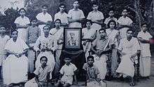 Teachers and students of the first upper primary batch (1939). The teachers (sitting) are P.P.Varghese, K.P. Abraham, Parangeth Paily Poulose, Mothaikkara Narayana Pillai.
