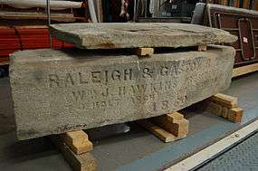 Cornerstone of the Raleigh and Gaston railroad building of Raleigh, NC
