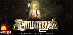 Ramanujar (Tamil: ராமானுஜர்) is a Tamil historical soap opera that airs on Kalaignar TV. The show premiered on 1 June 2015 and airs Monday through Friday at 7:30PM IST. The show is directed by Dhanush and creative director Kutty Padmini.[1][2] The show Singers Deepak, Ramee, Dharshini and Saravanan. The show completed its 250th episode on 17 May 2016.