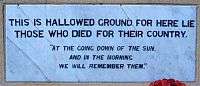 Inscription stone from original memorial at Tobruk: This is hallowed ground for here lie those who died for their country.