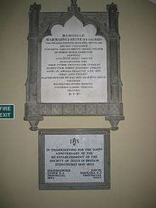 Plaques marking the Jesuit restoration in England at Stonyhurst and its bicentenary in 2003.