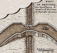 The Répudre Aqueduct (French: pont-canal de Répudre) is the first aqueduct built on the Canal du Midi. Pierre-Paul Riquet designed it to cross the Répudre River.[1] [2] It was built by Emmanuel d'Estan. It was designed in 1675 and completed in 1676, but was severely damaged that winter and had to be rebuilt.[2][3] It is one of three original aqueducts created by Pierre-Paul Riquet during the building of the canal from 1667 to 1681. [4]