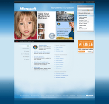 An official web site for the search was set up and the McCann family released two early video appeals.[2] The first was a photograph and video montage set to Simple Minds' song "Don't You (Forget About Me)" and included an animation of the word LOOK in uppercase with a reproduction of her coloboma as a radial line inside the first letter O, which blinks.[3] The second featured a montage of images with a voice-over by actress Zoë Wanamaker mentioning her coloboma, asking for information of her whereabouts, and to download and display a poster of her from the official site.[4]
