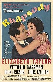 Rhapsody is a 1954 American musical romance drama film directed by Charles Vidor and starring Elizabeth Taylor, Vittorio Gassman, John Ericson, and Louis Calhern.