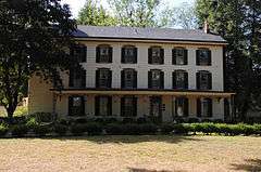 Riverside Farm, also known as Evermay-on-the-Delaware, is a historic hotel located near Erwinna, Tinicum Township, Bucks County, Pennsylvania. The house is a 3 1/2-story, six bay, frame vernacular dwelling with Greek Revival and Italianate style influences. The oldest section of the main house was built in the late 18th century as a two-story, three bay frame structure. Additions to the house occurred between about 1870 and 1883, when it took its present form. A stairwell addition was built in 1982. The front facade features a one-story, flat roofed porch. Also on the property are a contributing tenant house, carriage house, shed, and ice house. The house was built as a private dwelling, then converted for use as a hotel and resort starting about 1870. It operated as an inn until 1930. It reopened in 1982 as a bed-and-breakfast known as EverMay On-The-Delaware.[2] But was closed in 2005 and now operates as a private residence.