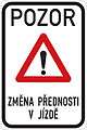 Caution, change of arrangement (end of priority way)