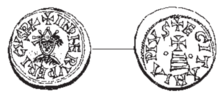 After the coup, the division of the kingdom into two factions, with the southwest (the provinces of Lusitania and western Carthaginiensis around the capital Toledo) in Roderic's hands and the northeast (Tarraconensis and Narbonensis) in the hands of Achila is confirmed by archaeological and numismatic evidence. Roderic's twelve surviving coins, all bearing the name Rvdericvs, were minted at Toledo, probably his capital, and "Egitania", probably Idanha-a-Velha.[12] The regions in which the coins have been discovered do not overlap and it seems highly probable that the two rulers ruled in opposition from different regions. It is unknown to whom the provinces of Gallaecia and Baetica fell.[12] That Roderic and Achila never appear to have come into military conflict is probably best explained by the preoccupation of Roderic with Arab raids and not to a formal division of the kingdom.[13]