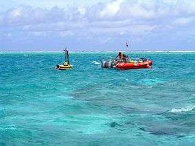 Oceanographers deploy a buoy inside Rose Atoll | |