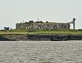 Fort Bovisand overlooking Plymouth Sound, showing the forward face of the casemates, each having an iron shield pierced by an embrasure for the gun to fire through.