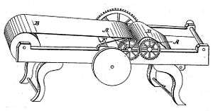 - ↑ 76 U.S. at 789–90, 794; Goodyear v. Providence Rubber Co., 10 F. Cas. 712, 720 (C.C.D.R.I. 1864). Goodyear received other patents, as well, including one, U.S. Patent No. 9319, on a machine for making vulcanized-rubber fabric, depicted at right.