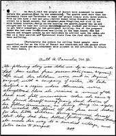 The most authentic news that we had of the slaughter of a company of men sent out from prison was brought by our own druggist. His group of 800 men had been taken out not many hours from Harput, bound together in groups of four, and under strong guard. This man (Melkon Lulejian, brother of Professor Donabed Garabed Lulejian) found himself cut loose from his bonds, and escaped from the midst of the killing. His companions who were not able like himself, were being deliberately killed by their own guards.[6]