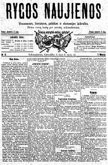 - ↑ "Rygos Naujienos," in Lietuvių naminis draugas (Liudvikas Jakavicius, AB Lietuvos Knygynas, 1905; pg. 01, book in the Martynas Mazvydas National Library of Lithuania)