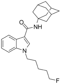 STS-135 (N-(adamantan-1-yl)-1-(5-fluoropentyl)-1H-indole-3-carboxamide, also called 5F-APICA) is a designer drug offered by online vendors as a cannabimimetic agent. The structure of STS-135 appears to utilise an understanding of structure-activity relationships within the indole class of cannabimimetics, although its design origins are unclear.[1] STS-135 is the terminally-fluorinated analogue of SDB-001, just as AM-2201 is the terminally-fluorinated analogue of JWH-018, and XLR-11 is the terminally-fluorinated analogue of UR-144. STS-135 acts a potent cannabinoid receptor agonist in vitro, with an EC50 of 51 nM for human CB2 receptors, and 13 nM for human CB1 receptors.[2] STS-135 produces bradycardia and hypothermia in rats at doses of 1–10 mg/kg, suggesting cannabinoid-like activity.[2]