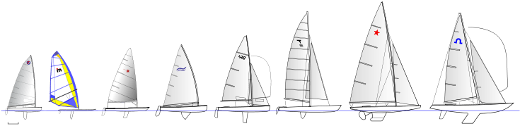 | Class | Type | Event | Sailors | Trapeze | Mainsail | Jibb/Genoa | Spinnaker | First OG | Olympics so far |