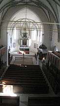 Construction of a large fortified late Gothic church began in 1493 on the site of a Romanesque basilica,[1][2] and the main structure was completed in 1496.[3] The church was dedicated to Saint Stephen of Hungary.[4] A few payments from the authorities at Sibiu for building the church survive; these date from 1494 to 1525. From 1503 to 1507, the village received a Papal indulgence upon the request of a parishioner, and was no longer obliged to quarter troops or send provisions to the army of the Kingdom of Hungary.[1]