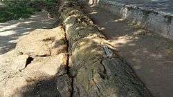 This fossil is of a conifer, measures around 18 meters long and a geological treasure.[1] Similar fossilized tree trunks have been found in nearby Varagur, Anaipadi, Alundalippur, and Saradamangalam,[2] all located within a 10 km radius of Sathanur.