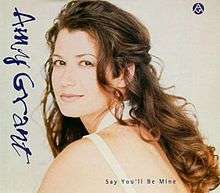 "Say You'll Be Mine" is a 1994 single by Christian music singer Amy Grant. It was released as the second single from the House of Love album in the United Kingdom. However, unlike the previous singles from House of Love, "Say You'll Be Mine" was not released in the United States. On her 2004 DVD release, Greatest Videos 1986-2004, Grant revealed that "Say You'll Be Mine" was planned as a U.S. single but the label pulled its release at the last minute. It performed better in the UK than its three predecessors, reaching #41.