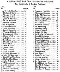 A charter was obtained in May for the construction of a railroad from Scottsville to LeRoy. According to some sources (e.g., Early American Railroads, Franz Anton Ritter von Gerstner's "Die innern Communicationen," 1842-1843), the original intention had been to go as far as Batavia, a distance of twenty-six miles. Powell Carpenter, Abraham Hanford, Philip Garbutt, E. H. S. Mumford, Clark Hall, Ira Carpenter, Thomas Halsted, Nathaniel Clark, Donald McDonald and Thomas Brown were named as incorporators. The capital stock of the corporation was $200,000.00 which was divided into shares of fifty dollars each.