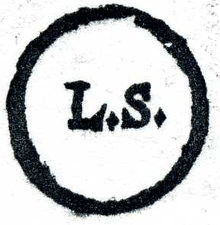 Originally, only a wax seal was accepted as a seal by the courts, but by the 19th century many jurisdictions had relaxed the definition to include an impression in the paper on which the instrument was printed, an embossed paper wafer affixed to an instrument, a scroll made with a pen, or the printed words "Seal" or "L.S." (standing for the Latin term locus sigilli meaning "place of the seal").