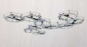 The Distributed Flight Array is a modular robot consisting of hexagonal-shaped single-rotor units that can take on just about any shape or form. Although each unit is capable of generating enough thrust to lift itself off the ground, on its own it is incapable of flight much like a helicopter cannot fly without its tail rotor. However, when joined together, these units evolve into a sophisticated multi-rotor system capable of coordinated flight and much more. More information can be found here.